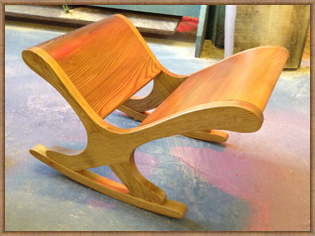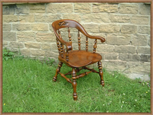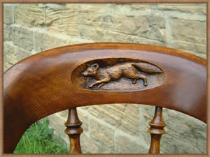 Commissioned berger 'e bow' chair with 'running fox' woodcarving design. |