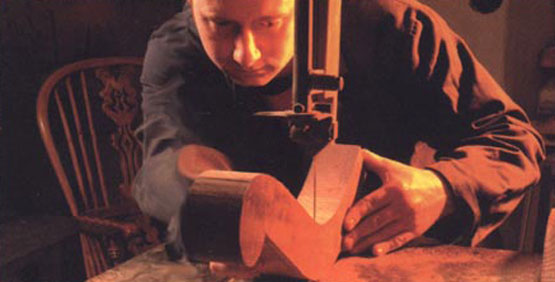 A craftsman cuts out the arm for a smokers high bow made from the distinctive burr elm.